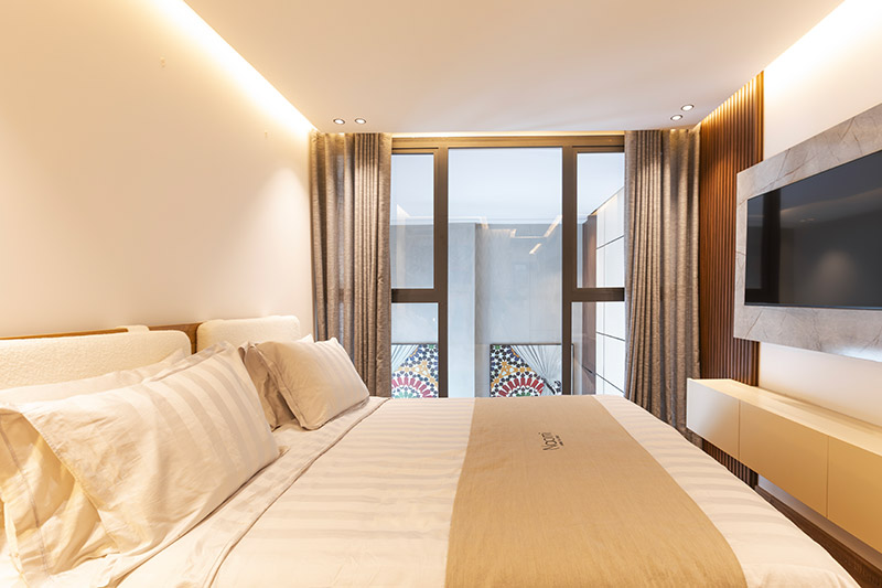 Le calme du quartier Oasis et la décoration soignée pensée pour le bien-être.