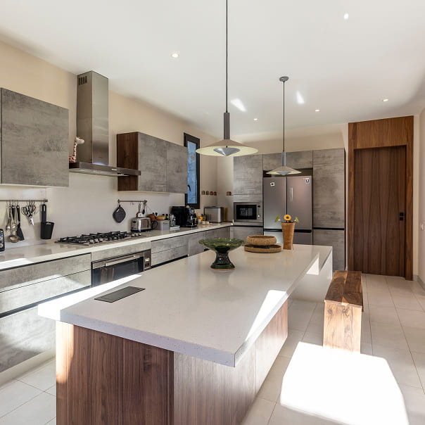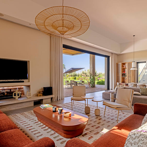 Face aux montagnes de l’Atlas, cette villa moderne s’ouvre sur un hectare de jardin fleuri. Les grandes baies vitrées laissent entrer la lumière et offrent une vue imprenable.